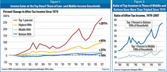 Meanwhile, virtually all of the income gains of recent decades have gone to those at the top of the income distribution, thus widening the inequality gap and reducing social mobility.